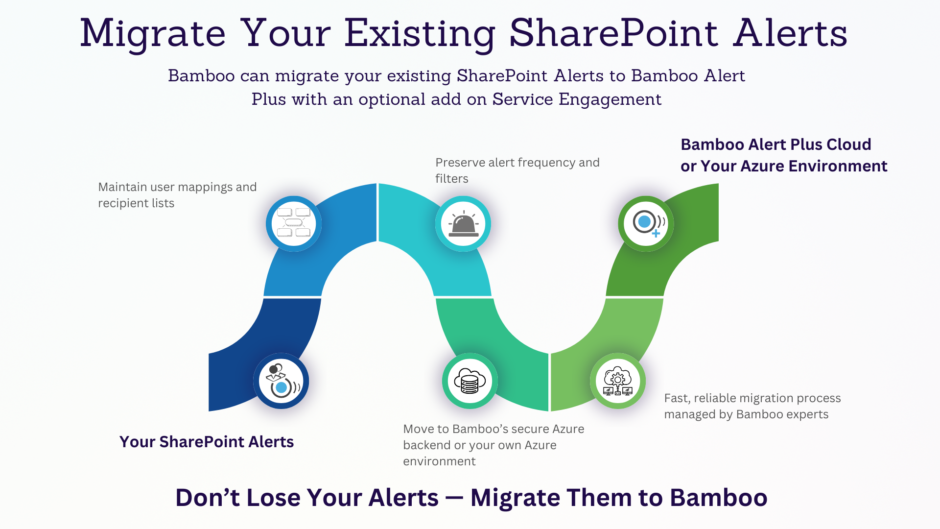 Alert Plus by Bamboo gives you everything you need; alerts, management, migration, and support.